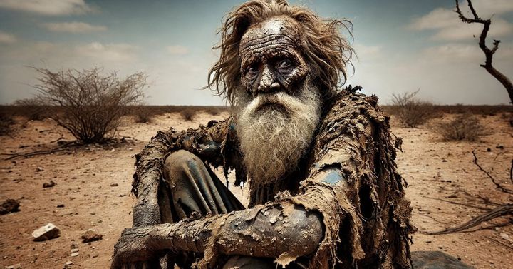 その結果、彼の体は泥や灰で覆われ、皮膚自体が乾いた土のようになってしまったのです。