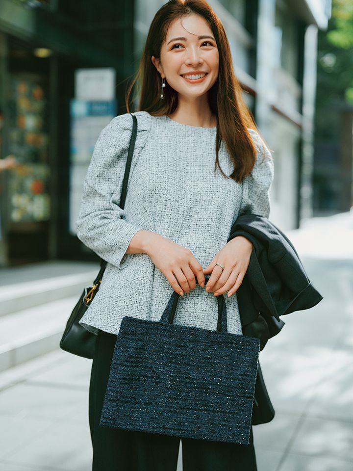 ②一枚持っておきたい!シーズンレスで使える「ツイードトップス」
