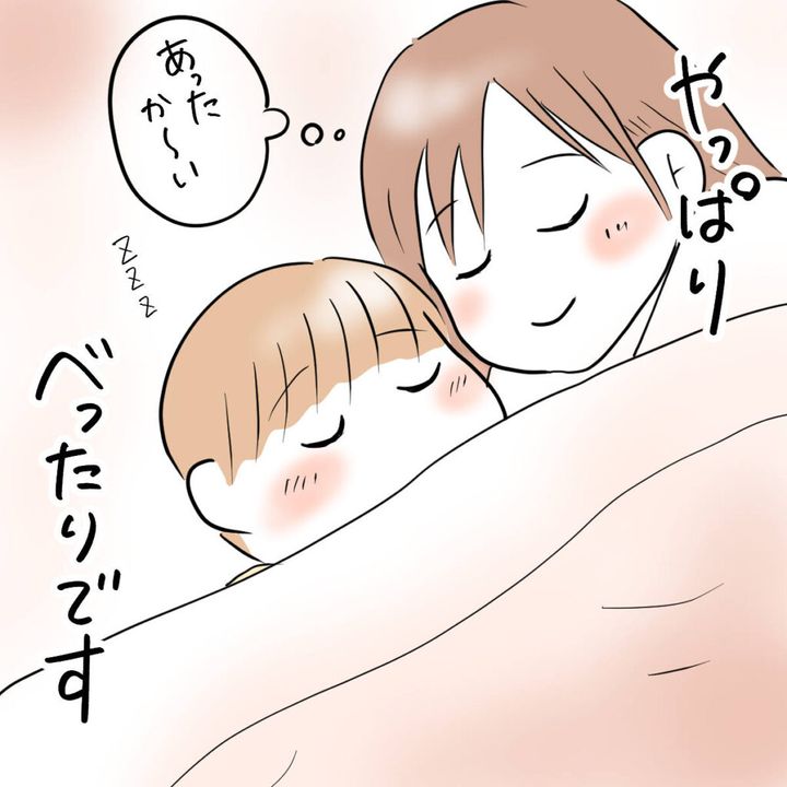 やっぱりべったりな息子です。寝ぼけながらパパの布団から私の布団に入ってきた息子に愛おしさがこみ上げます。