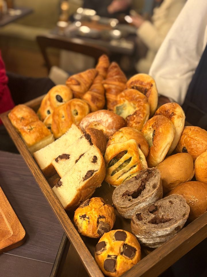 ブランチは、好きなパン4個+スープorサラダを選べて、追加料金でデザートもつけられました☺️