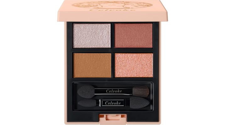 凛とイノセントにきらめくグレージュ、じわりとにじむ色香のようなレディッシュレッド、深みと経験を思わせるキャメルブラウン、まばゆいときめきが瞬くグリッターピンクの4色をひとつのフレームに。重ねてもにごらずに美しく調和するカルテットで、まぶたを自由なキャンバスに。