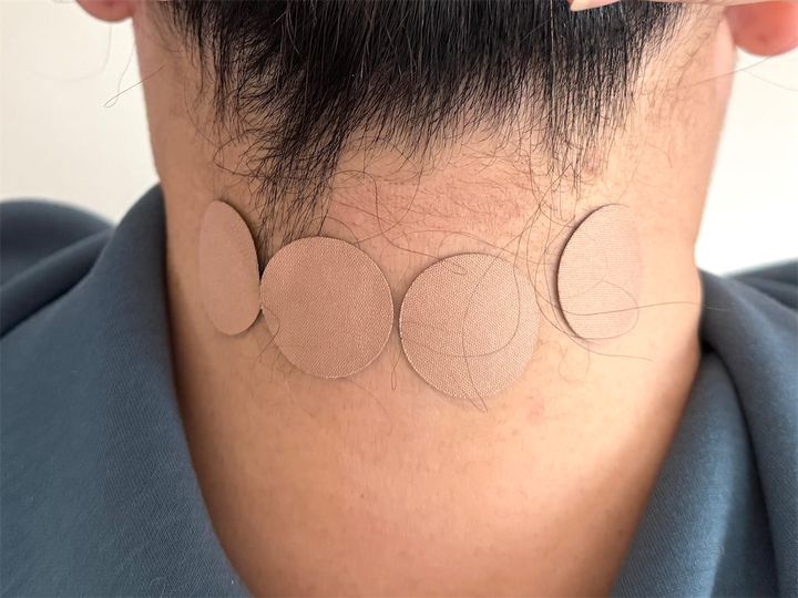 図を見ながら、うなじに4枚、肩に4枚並べて貼りました!ひとつひとつが小さいから、背中やうなじに貼りやすい!