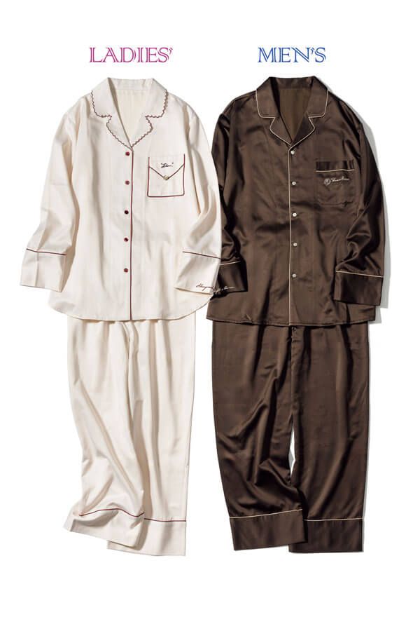 シックなパジャマでそろえれば眠る時間まで仲良くいられそう♪ メンズは胸元のポケット部分にバラの刺繍をON。ウィメンズは胸ポケットがラブレターデザインで、バレンタインのムードたっぷり。