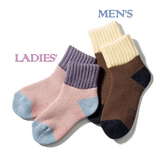 底冷えを防ぐあったかルームソックスは旅行のお供にも最適。遊び心ある切り替え配色&内側が起毛感あるパイル地ではき心地GO OD。