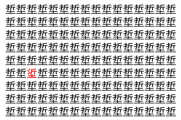 2. 【脳トレ】「埑」の中に紛れて1つ違う文字がある!?あなたは何秒で探し出せるかな??【違う文字を探せ!】