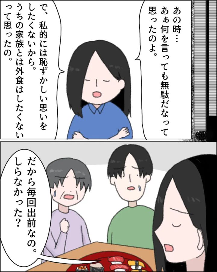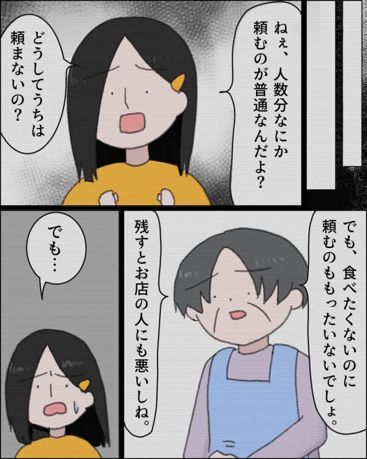 聞かない母に世間の常識を伝えても無駄。家族と外食しない理由。注文しない義母[9]|ママ広場マンガ