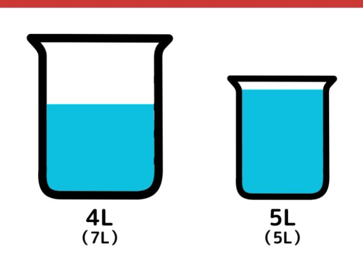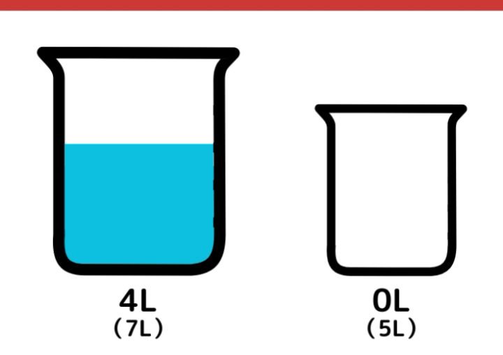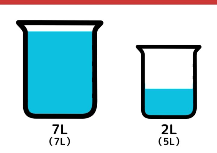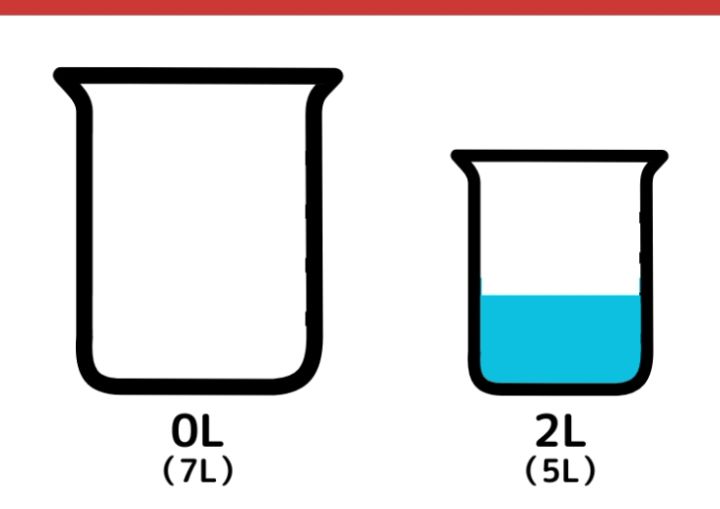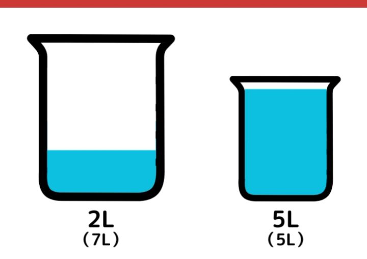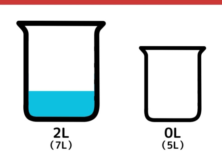 7Lの容器に入っていた2Lの水を5L容器に移します。