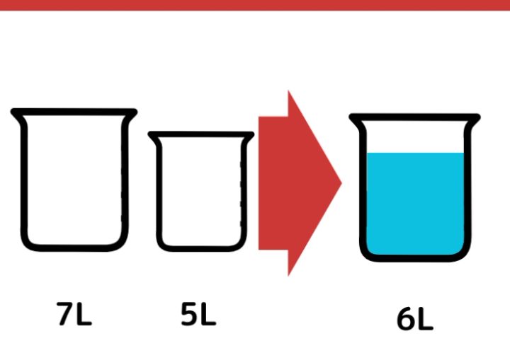 水がちょうど6L入る容器が手元にありません。7Lと5Lの容器を使って、ちょうど6Lの水を計る方法を考えてください。