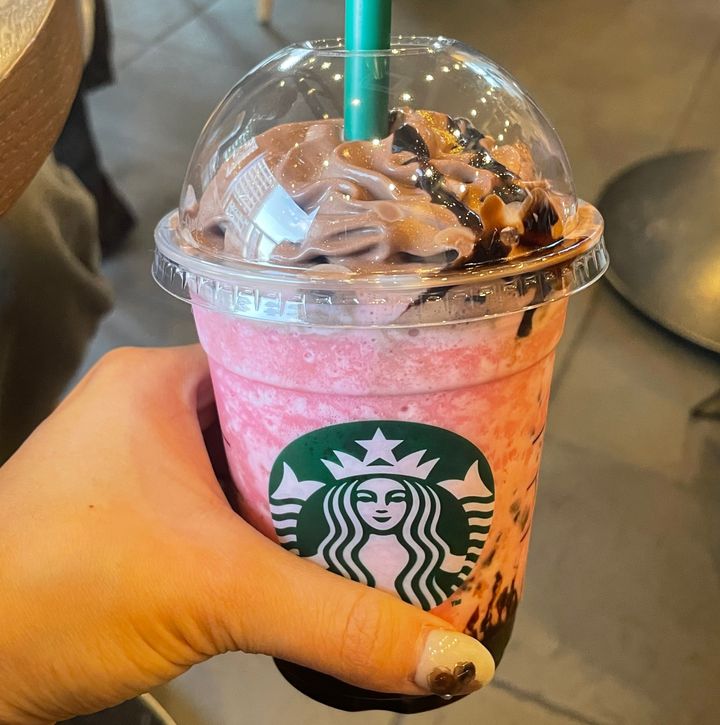 NAOです。先日前撮りが終わったので我慢していたスタバのフラペチーノを解禁しました!🩷