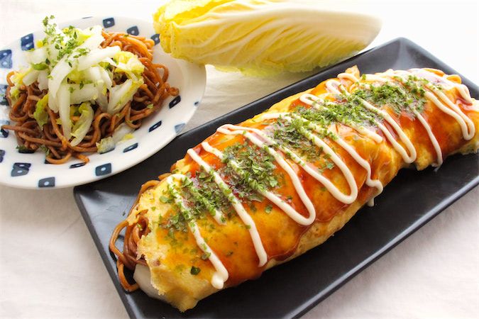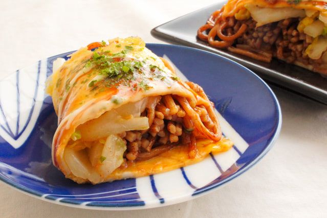 薄焼き卵の中はソース焼きそばと塩揉み白菜だけですが、ボリューム感のある仕上がりです。