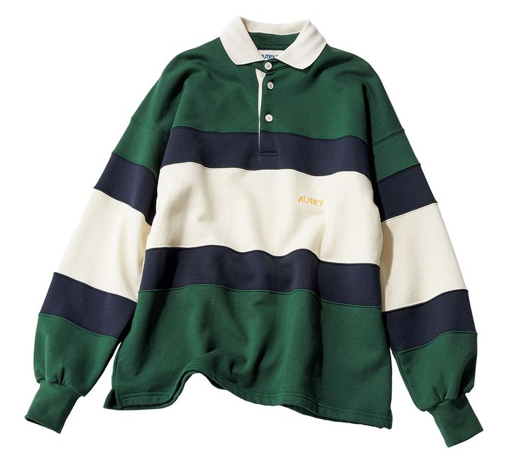 Tシャツに肩掛けしてアクセント使いもできる万能選手。ラガーシャツ(オートリー/トヨダトレーディング プレスルーム)