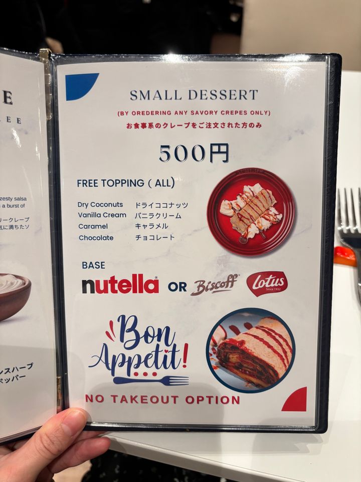 お食事系クレープを注文した場合にのみ頼める、"スモールデザート"クレープもあり。