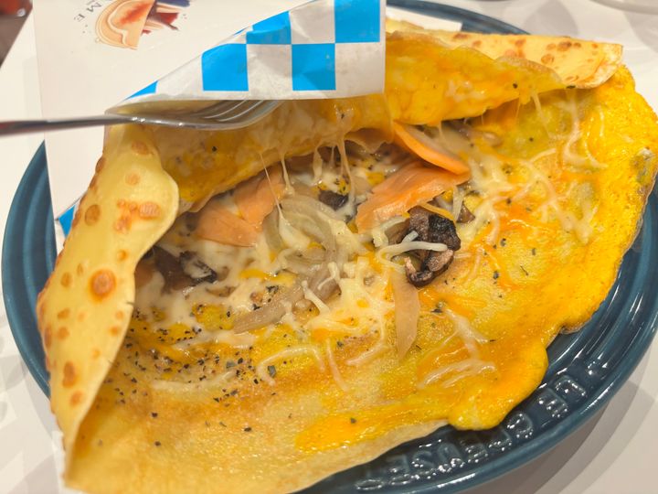 そして中のサーモンや具材の程よい塩気と、クレープ生地のほんのりした甘さがマッチ。