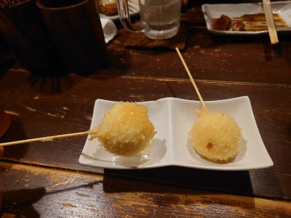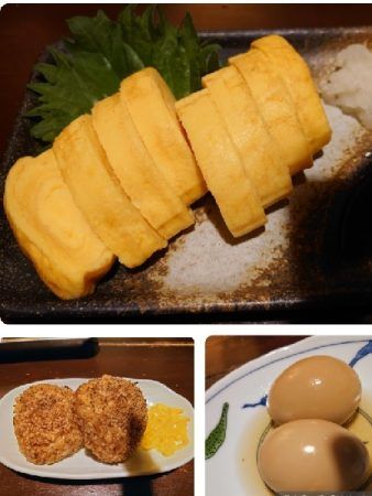 出汁巻き玉子、焼きおにぎり、おでんのたまご。 ご飯ものが途中で食べたくなります!焼きおにぎり、おいしー!串カツとあいますー。