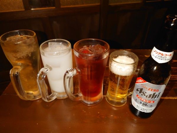 ジンジャエール(220円)、カルピス(220円)、山ぶどう(220円)、ノンアルコールビール(429円)、頑張ったご褒美にジュースで乾杯しました!