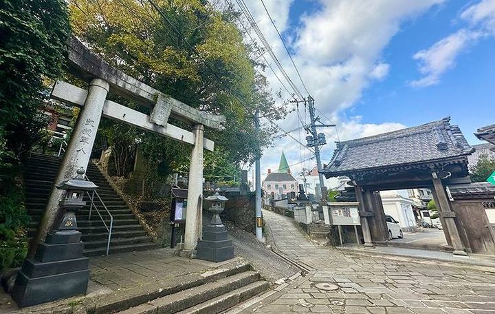 左に神社、中央に教会、右に寺がある、宗教の交差点のような長崎らしいスポット「祈りの三角ゾーン」。
