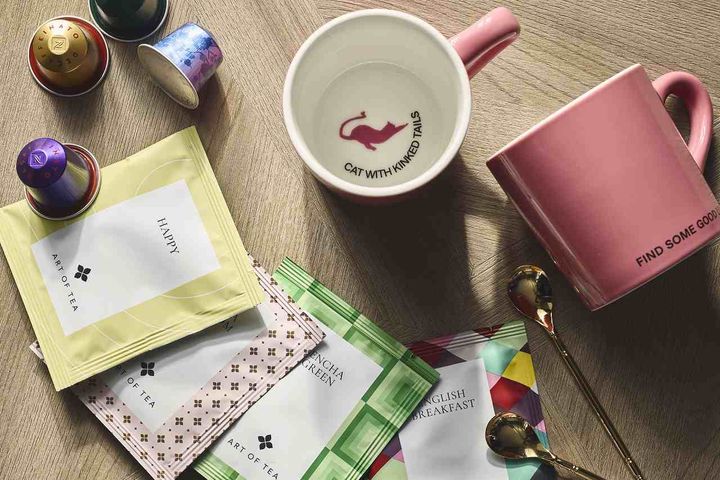 ネスプレッソのコーヒーやアートオブティーがあるので、客室でゆっくりティータイムを過ごすことも叶います。可愛らしいマグカップにも目が釘付け♡