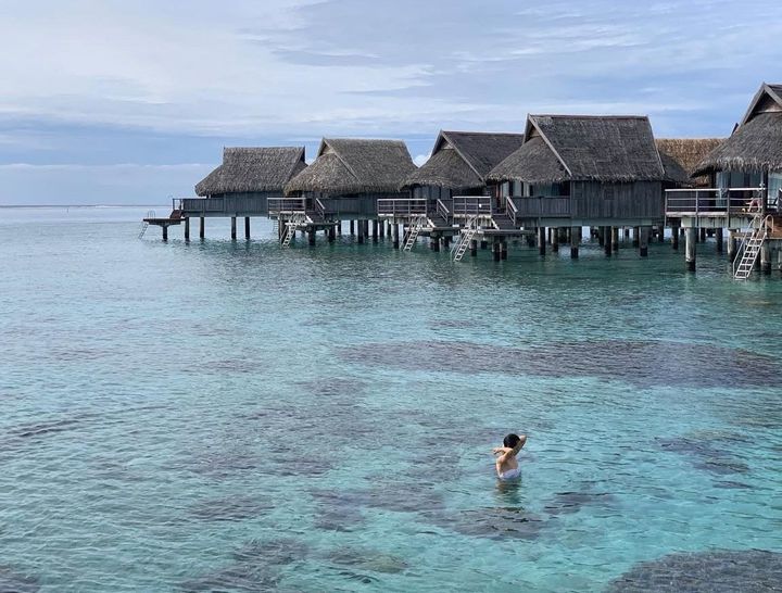 毎朝ベッドから起きて、10秒でラグーンへ直行。ひと泳ぎして、お腹がペコペコになったら朝食を食べる。なんて健康的な生活でしょう。タヒチはフランスの植民地だったこともあり、食のクオリティがとにかく高い! 新鮮なフルーツや絶品フレンチ、今思い返しても贅沢だったな。
