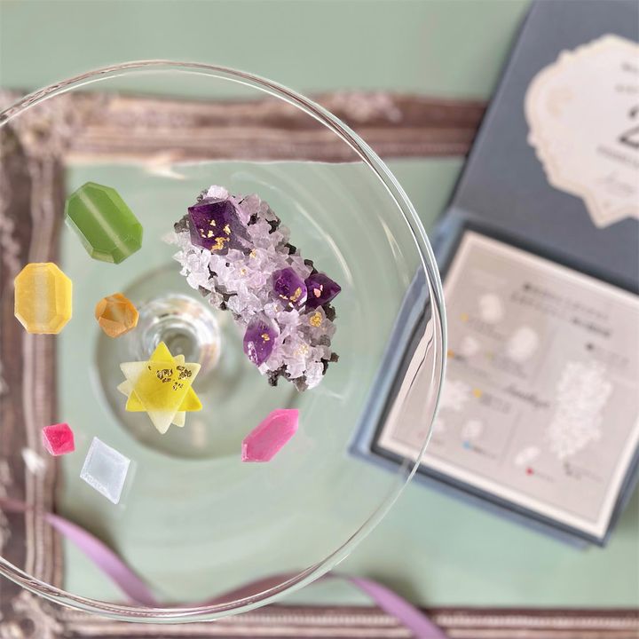 ハラペコラボの「こうぶつヲカシ」は、そんな琥珀糖に鉱物や宝石のイメージを加えた、アート作品のようなお菓子。