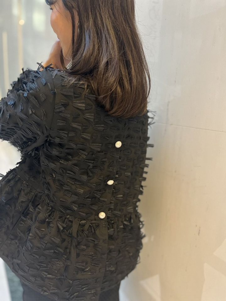 <保育園入園式>春らしいパール使いのブラウスがスタイリングの強い味方に