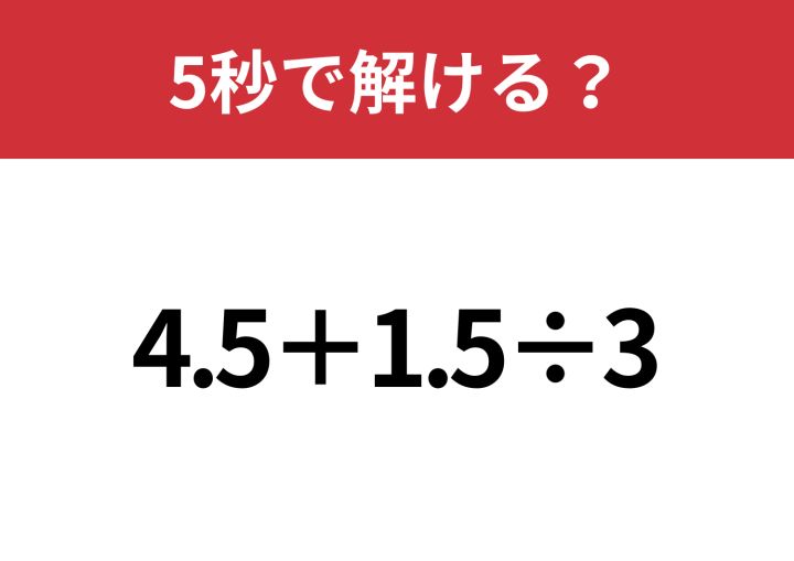 大人なら解けないと恥ずかしいかも!?「4.5+1.5÷3」5秒で解ける?