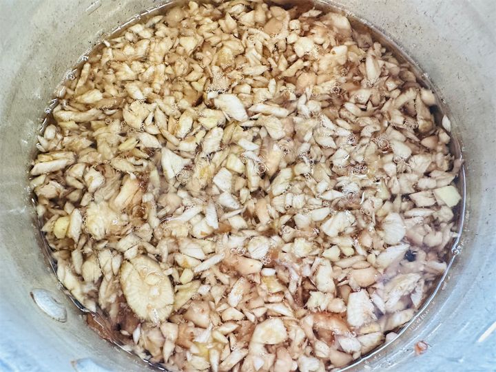 6.火を止める直前に、蜂蜜を加える(照りが出ます)。