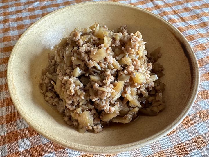 いつもの鶏そぼろのように、卵やいんげんと一緒に盛りつけて三色丼にしてもおいしくいただけましたよ。