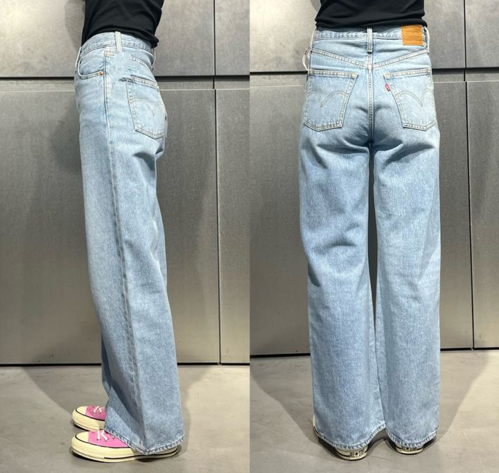 さらにウエストが少し内側に入っているのも見どころ。そもそも「555™」はメンズフィットなので、ヒップに合わせるとウエストはブカブカってことも多く、女性はベルトが必要になります。でもこれは腰まわりのフィット感がいいので、ベルトレスでもはけちゃうんです。パンツはシルエットを崩さないようベルトレスではきたい筆者にとっては、かなりの高ポイントでした!