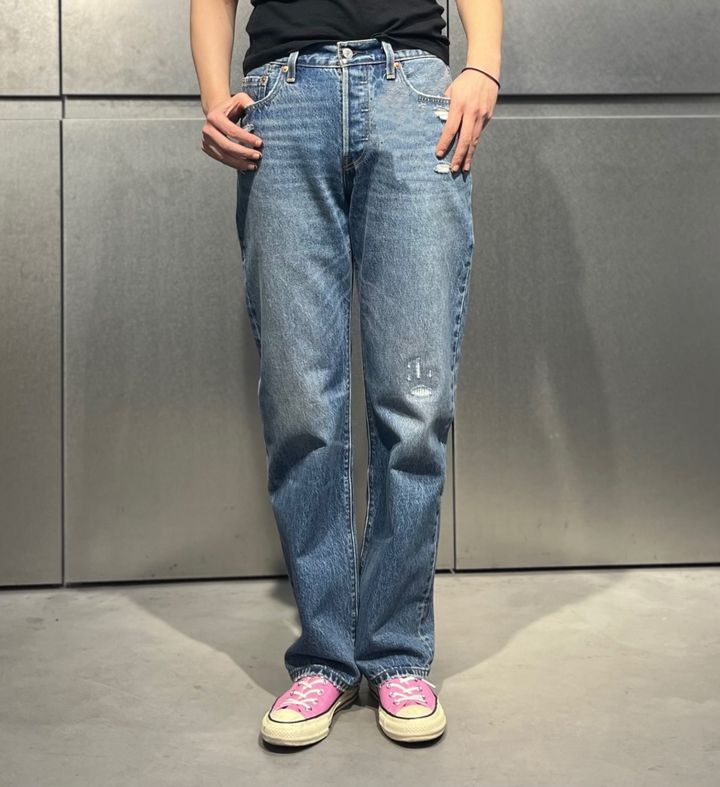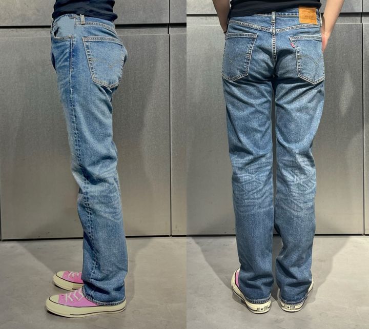 「501®」と同じストレートシルエットですが、こちらはちょっとテーパードしているのが特徴。それゆえに脚がキレイに見えると、スタッフの間でも人気を集めているそう