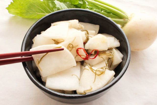 食べてみると、軽い酸味と少しピリッとした辛さがありますが、かぶの甘さを損なわないあっさりとした味わい。塩揉みしているので塩味が程よく付いていて、昆布の旨味もしっかり。