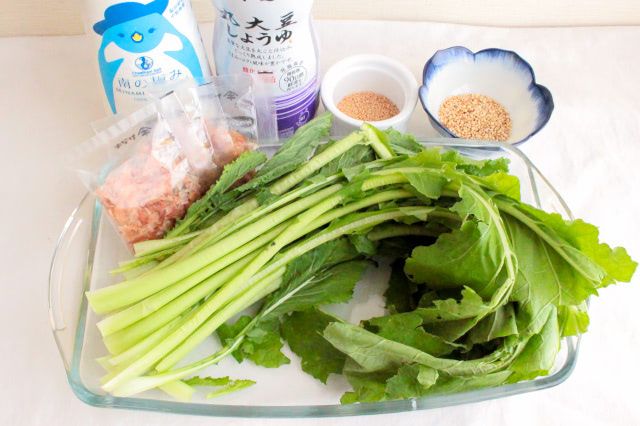 かぶの葉…適量 ※オリジナルの動画では「約300gを使用」と記載あり。今回は160gを使用。