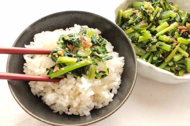 「茎と葉のふりかけ」をご飯に乗せていただいてみると、かつお節の旨味と白ゴマの香ばしい香りが鼻を抜けます。