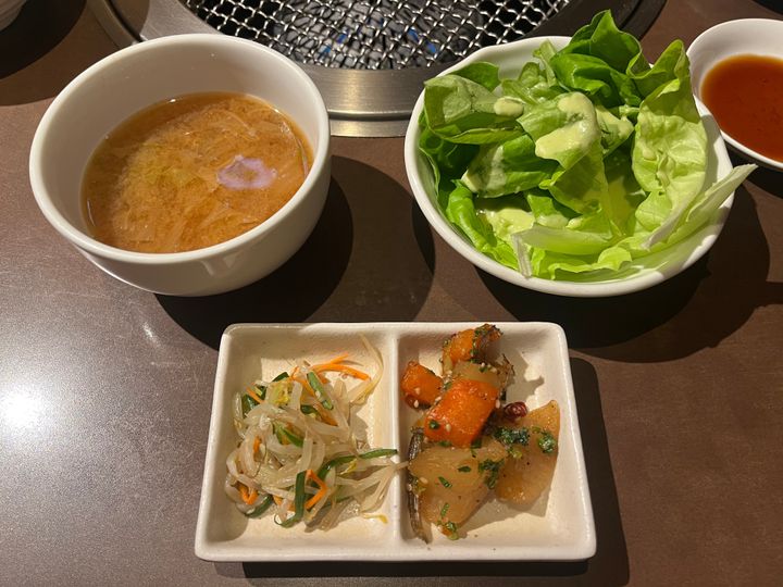 前菜、お肉盛り合わせ、ご飯、選べる麺がついたランチコースをいただきました。