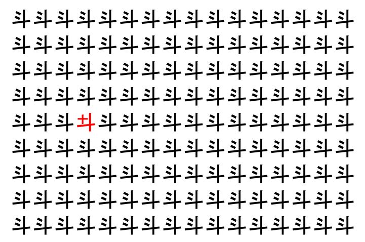 【脳トレ】「斗」の中に紛れて1つ違う文字がある!?あなたは何秒で探し出せるかな??【違う文字を探せ!】