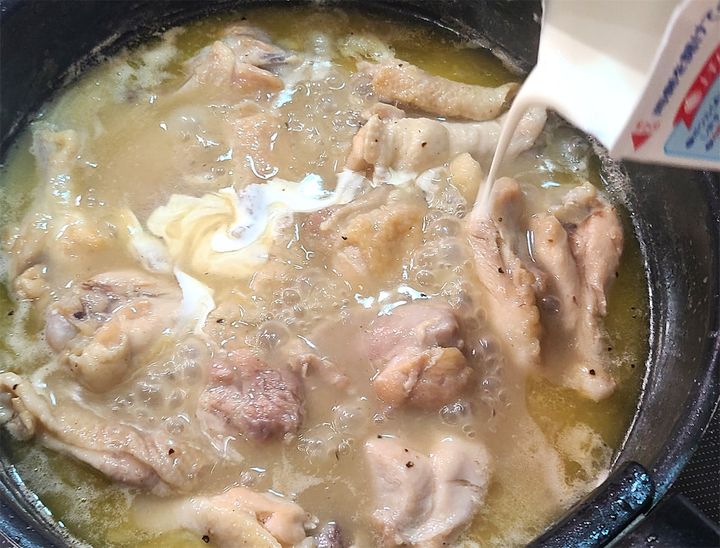 3. 【志麻さんの時間で解決レシピ】じっくりコトコトで旨味抽出♡ほろほろ鶏肉のまろやかクリーム煮作ろう!
