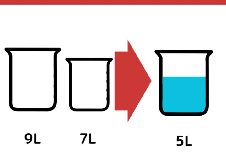 水がちょうど5L入る容器が手元にありません。9Lと7Lの容器を使って、ちょうど5Lの水を計る方法を考えてください。