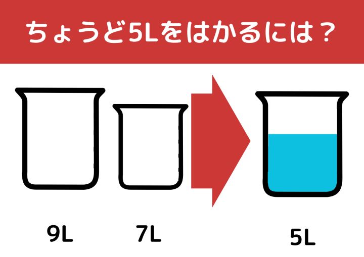 【クイズ】一流企業が入社問題にしている!?「9Lと7Lの容器で5L」をはかるには?