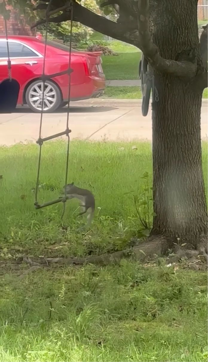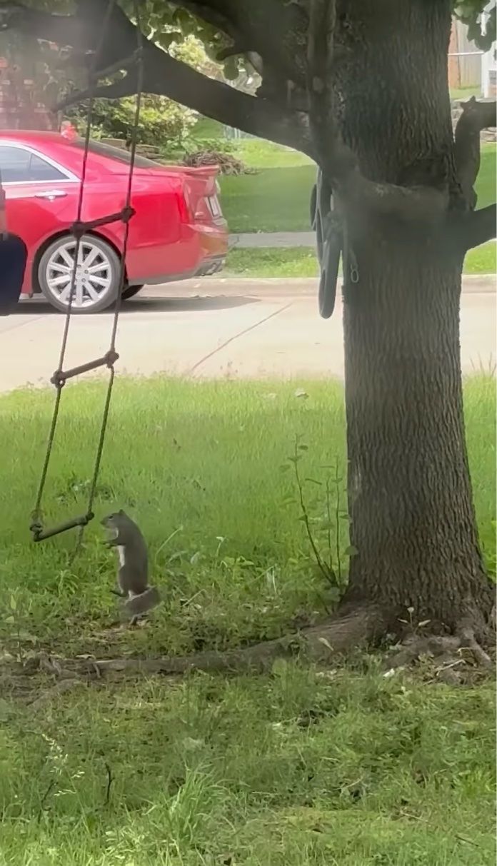 子供たちと一緒に窓の外にいるリスを観察していた撮影者さんは、おもしろい光景を目にしました。 なんとこのリス、木に掛けられた梯子のブランコに飛び乗ろうとしていたのです!