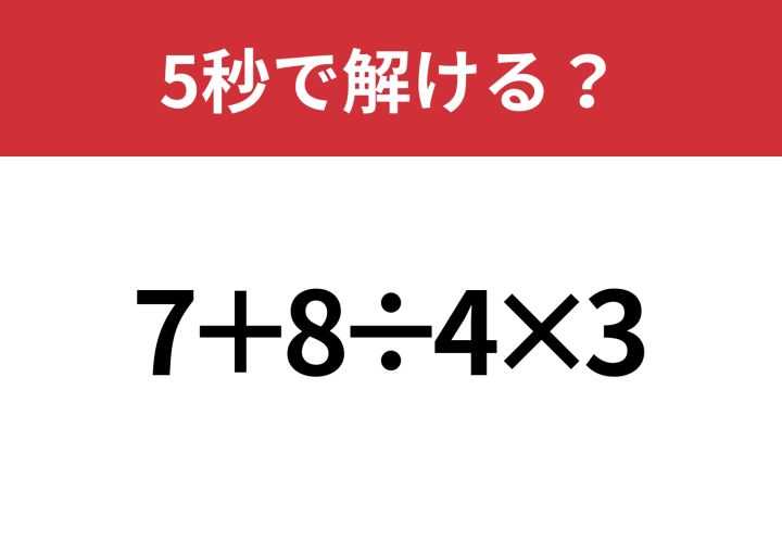大人が間違えると恥ずかしいかも!?「7+8÷4×3」5秒で解ける?