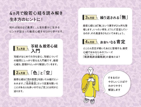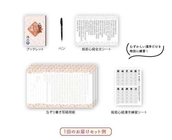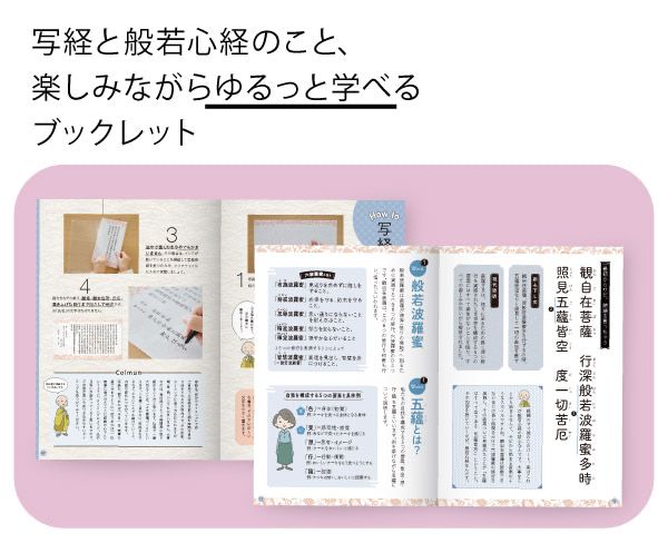 毎月届くブックレットでは、写経の作法や般若心経の意味をわかりやすく解説。