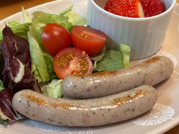 4本入りのパックが455円でした。 ドイツのチューリンゲン地方に伝わる伝統的なソーセージで、粗挽き肉で食べ応えがありますが、ハーブが香る爽やかな風味です。