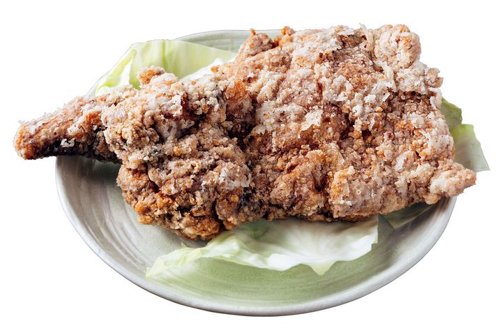 塩尻や松本では、スーパーの惣菜売り場でも見かけるほど馴染みのある山賊焼。ニンニク醤油に漬け込んだ鶏のもも肉やむね肉を、片栗粉をまぶして揚げるのが基本。タマネギやショウガを加えるところもある。発祥は諸説あるが、“元祖山賊焼”の石碑がある塩尻の居酒屋〈山賊〉が有力。3代目・高見孝直さんが祖父母の代から約80年受け継ぐスタイルで提供する。骨付きの一枚肉を秘伝のタレに丸1日漬け込んで高温で揚げ、外はカリカリ、中はジューシーに仕上げる。