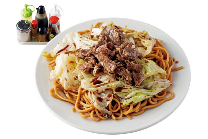 冷蔵庫が一般的ではなかった昭和30年代、生麺の保存法として考案された蒸し麺は、独特の弾力と四角い断面が特徴。そこに、伊那周辺で盛んに飼育された綿羊の肉(マトン)とキャベツやニンニクを合わせたのがローメンのルーツだ。スープ風と焼きそば風があり、女将の兄が中国で食べていた炒肉菜(チャーローサイ)がベースの〈うしお〉のローメンは焼きそば風の代表格。卓上のソースや酢、ゴマ油などの調味料を存分にかけて自分流にアレンジするのが通の食べ方。躊躇(ちゅうちょ)なくかけるべし。
