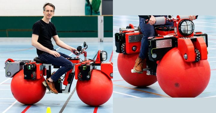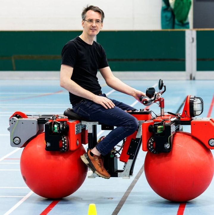 イギリスのエンジニア、ジェームズ・ブルトン(James Bruton)氏が開発したこのバイクには、一般的なタイヤではなく、サーカスで用いる大きなプラスチックボールが装着されているのです。