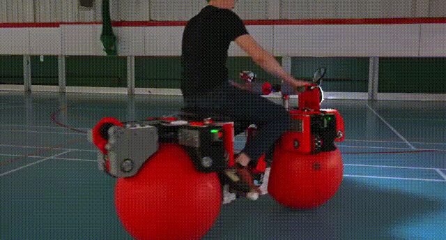 omnidirectional drift bike with wheels made of circus balls glides in any direction