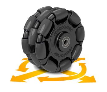このオムニホイールでは、通常の大きな車輪の外周に複数の小さなローラーを配置することで、全方向の移動を可能にしています。
