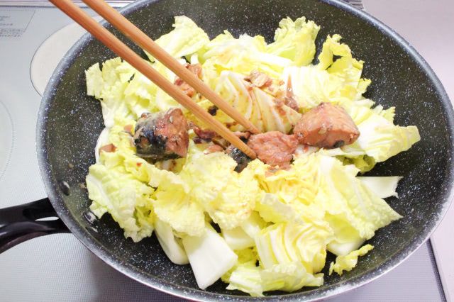 白菜とサバ缶を蒸し煮にするだけ!ヘルシー&旨味たっぷりでリピ決定♪