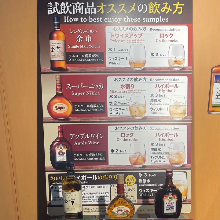 シングルモルト余市スーパーニッカアップルワイン3種類が用意されており、オススメの飲み方も示されているので、美味しく楽しく味わうことができました