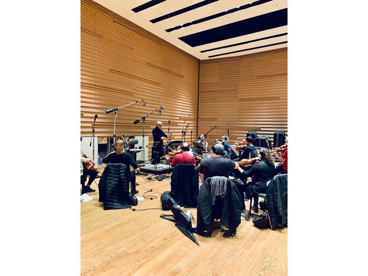 弦楽器のミュージシャンを集めたレコーディングの風景。指揮は坂本がみずから執った。Courtesy of Kab Inc./KAB America Inc.