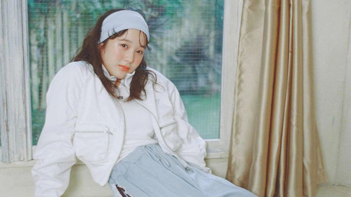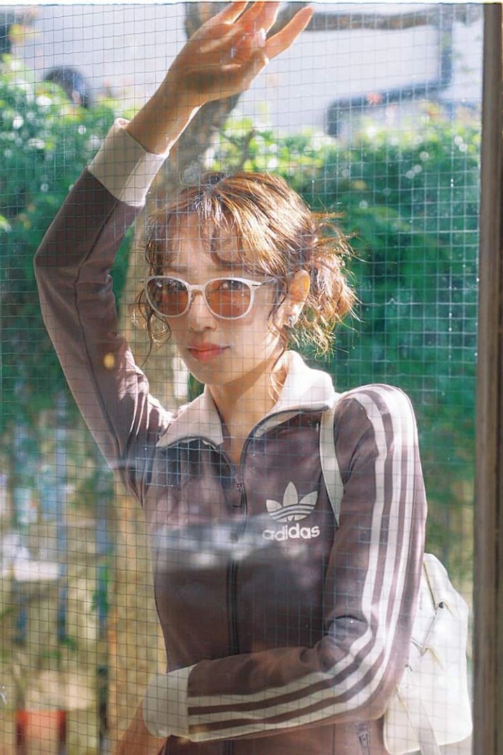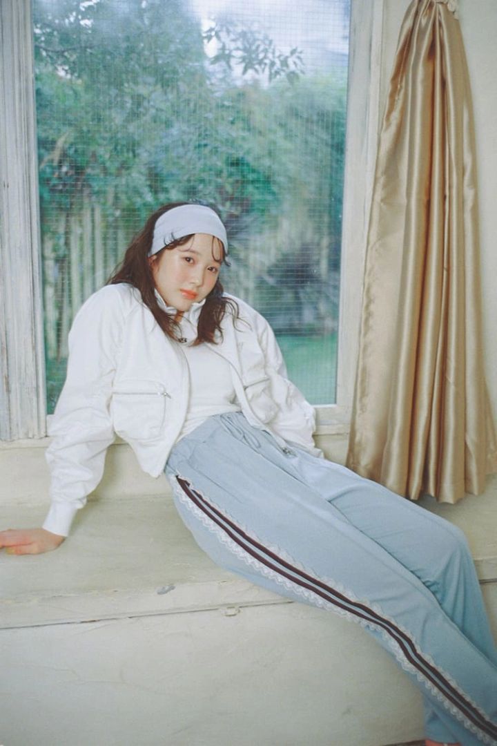 白トラックジャケット 27,500円/eimy istoire ルミネエスト新宿店 ロゴタンクトップス 14,300円/ダブルスタンダードクロージング(フィルム)サイドレースラインパンツ 4,949円/W♥C ヘアターバン 1,430円/アネモネ(サンポークリエイト)